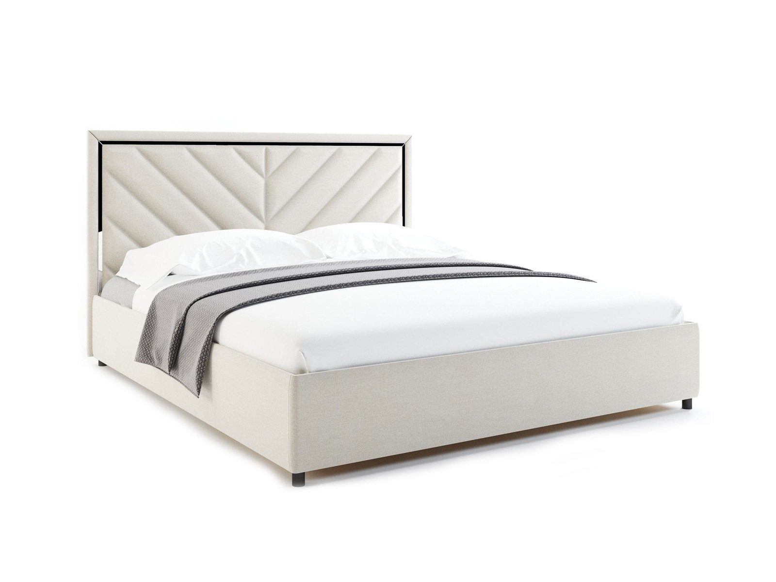 Виктория — кровать с высоким изголовьем в современном стиле. Изюминка модели — высокое мягкое изголовье с диагональными стяжками и зеркальной вставкой по периметру, которая создает яркие блики на свету.