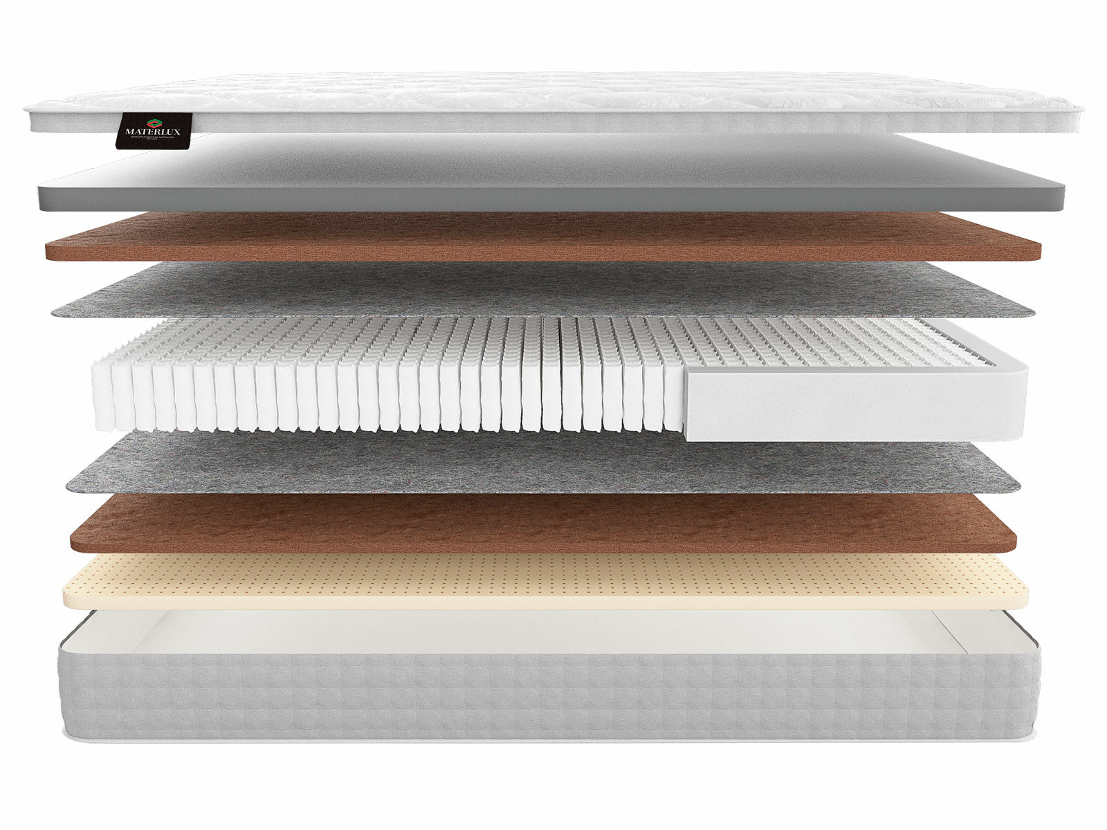 Термофиксированный фетр (500 гр./кв. м; 0,5 см): этот натуральный материал служит в качестве надежной изоляции между пружинами и внешними слоями матраса, обеспечивая дополнительную прочность и комфорт.
