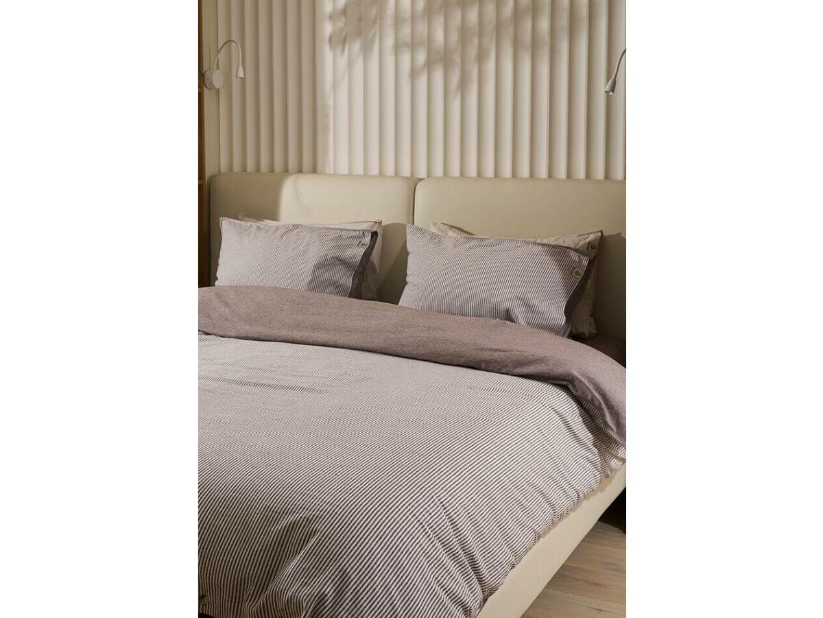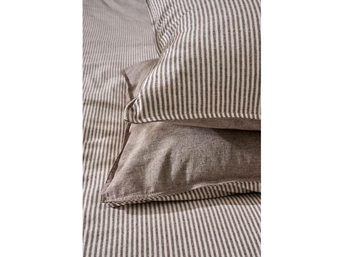 Наволочки и пододеяльник- двусторонние, одна сторона в полоску, оборотная - однотонная, коричневый меланж.
