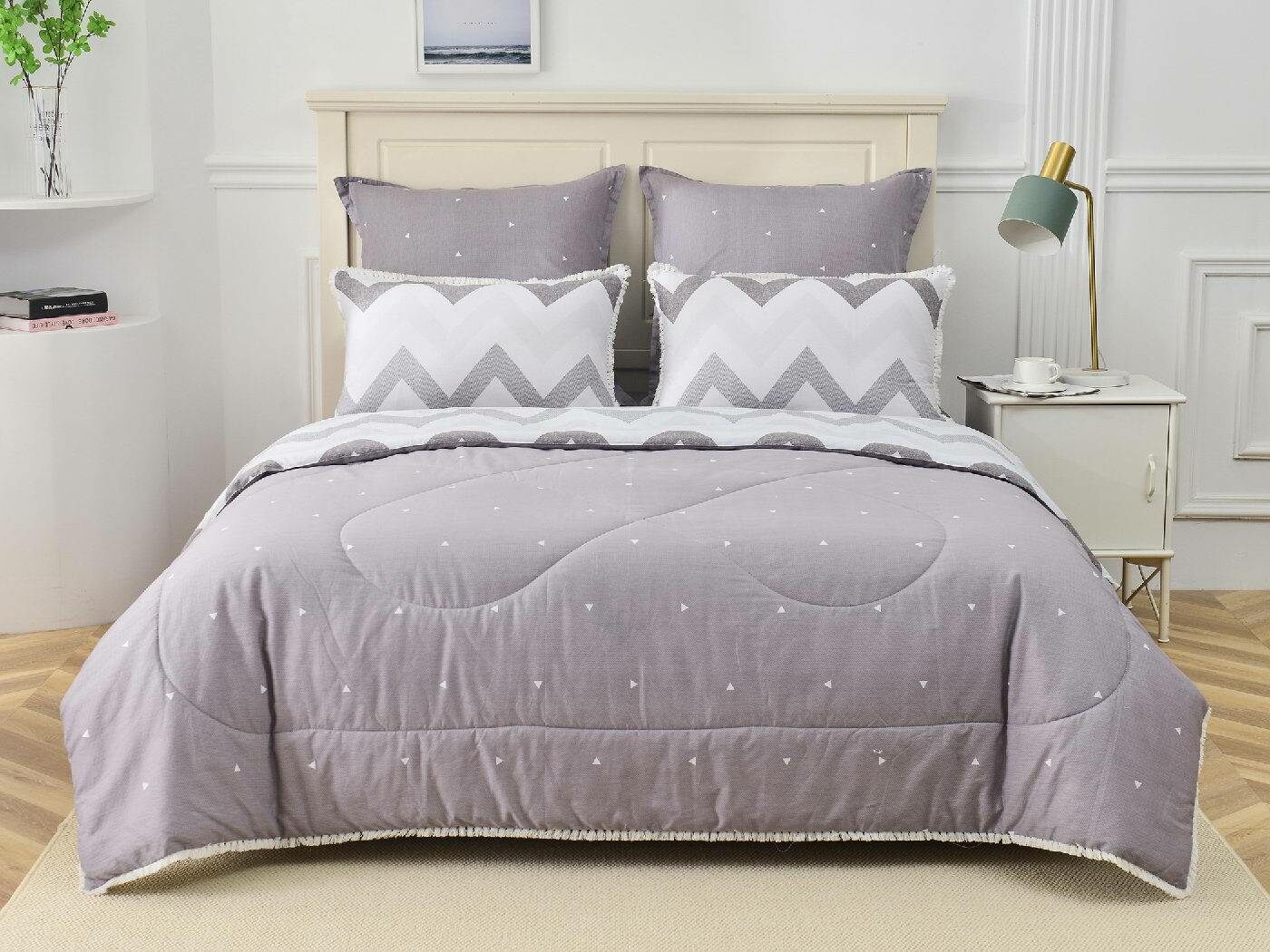 В комплекты комфортеров с одеялом Бернадетт входят наволочки, простыня и легкое всесезонное одеяло. Оцените это современное и очень удобное решение, которое идеально подходит тем, кто не любит возиться с пододеяльниками.