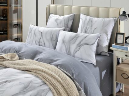 Лорайн — идеальный выбор для тех, кто одинаково ценит комфорт, эстетику и практичность. В составе — Хлопок 100%, поэтому у постельного белья исключительная износостойкость. Даже после многочисленных стирок оно сохранит первозданный цвет, прочность, мягкость и гладкую фактуру. Благодаря отличной воздухопроницаемости материал обеспечивает прохладу летом, а зимой согревает, плюс дарит приятные тактильные ощущения и здоровый сон. Сатин — еще и удивительно красивая ткань, КПБ из нее украсит интерьер спальни, сделает ее по-настоящему уютным местом для полноценного отдыха. К тому же у дизайнеров этот материал всегда в тренде, поэтому с такой покупкой вы точно не прогадаете.