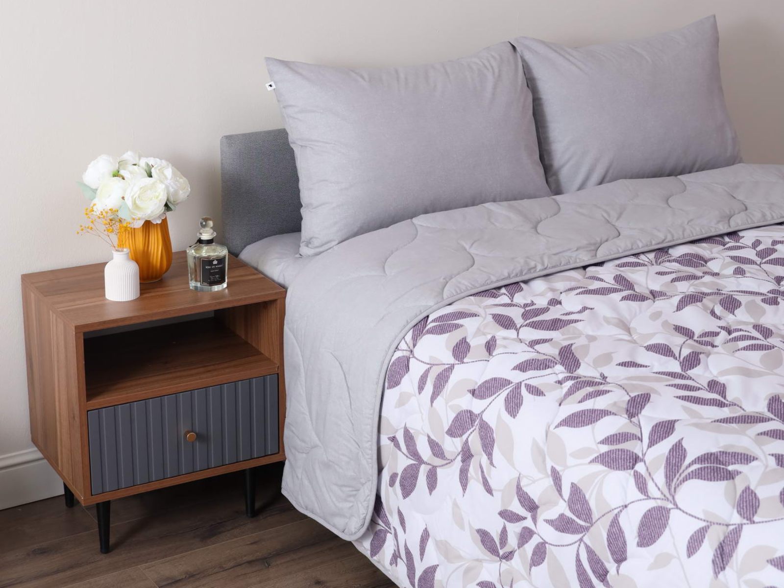 Комплект Мелвин легко стирается в обычной машине в бережном режиме и также легко гладится.
