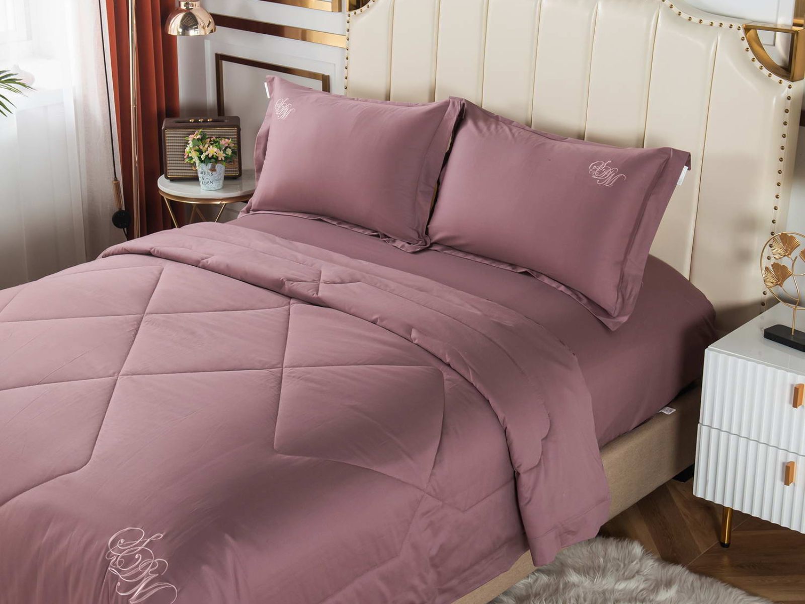 Элегантные комплекты постельного белья с одеялом премиум класса из нежной, натуральной ткани макосатин Нельсон. Этот материал обладает рядом важных качеств: он прочный, но мягкий, гладкая поверхность придает постельному белью красивый внешний вид. Натуральная ткань не вызывает аллергии и раздражения, такое постельное белье приятно использовать в любое время года, и в жару, и в холод.