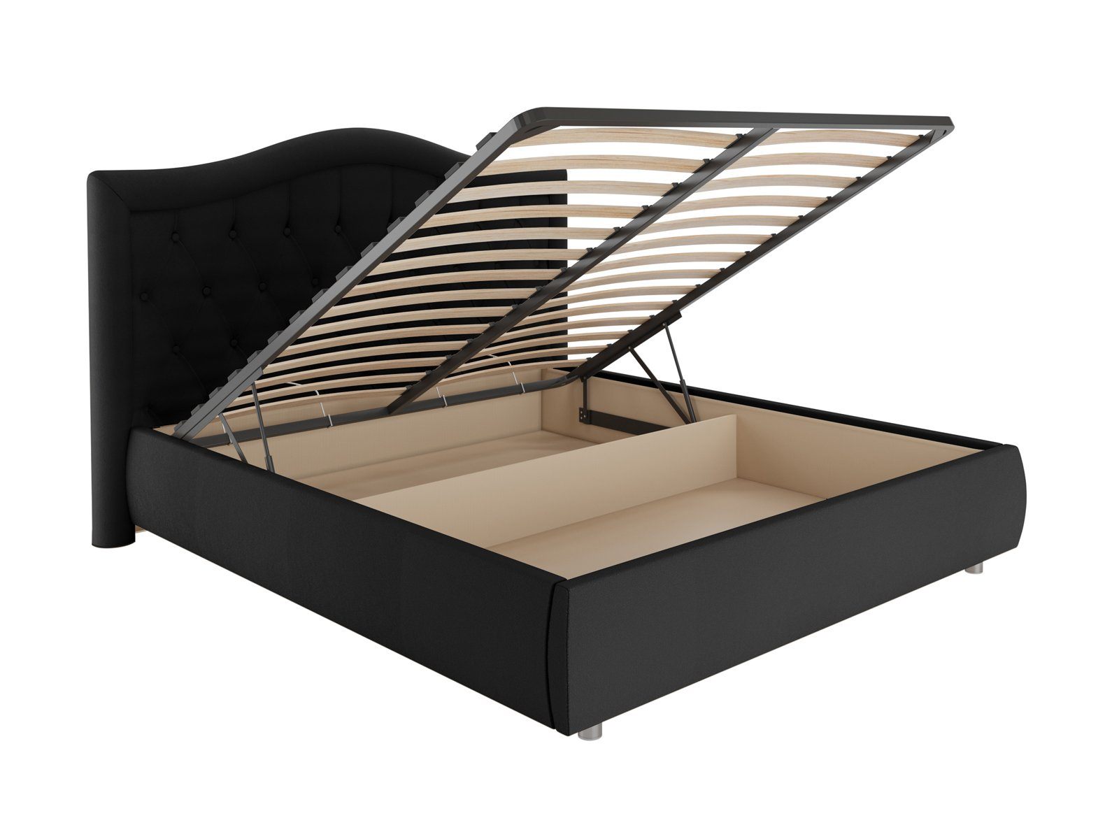 В комплектации с подъемным механизмом кровать имеет вместительный бельевой короб с двумя отделениями.