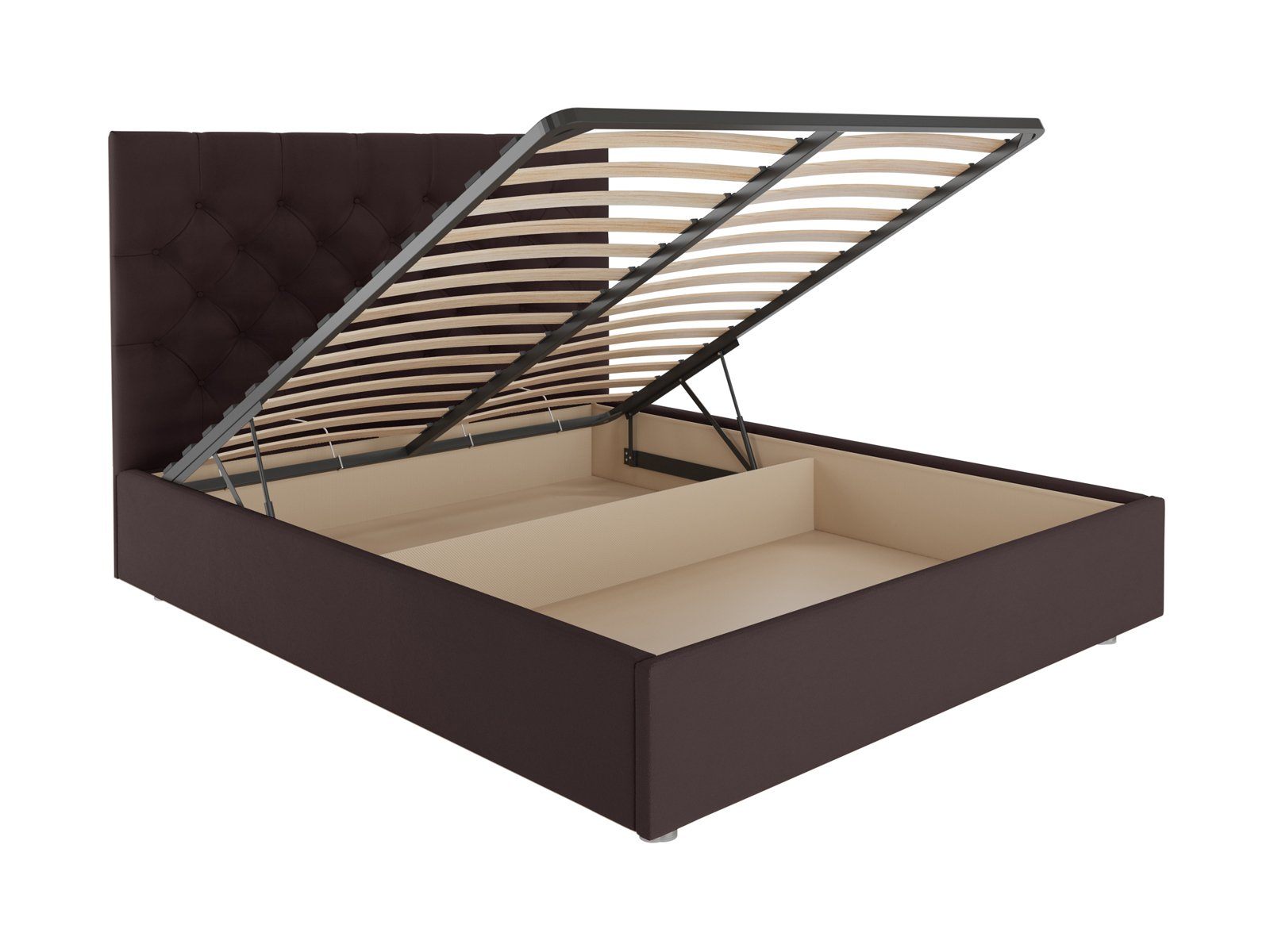 В комплектации с подъемным механизмом кровать имеет вместительный бельевой короб с двумя отделениями.