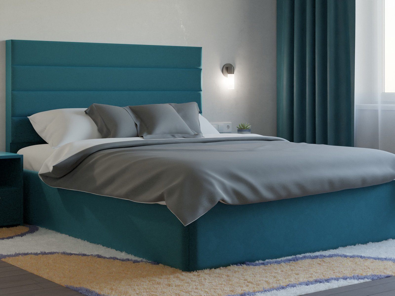 Мягкая кровать с обивкой из велюра.