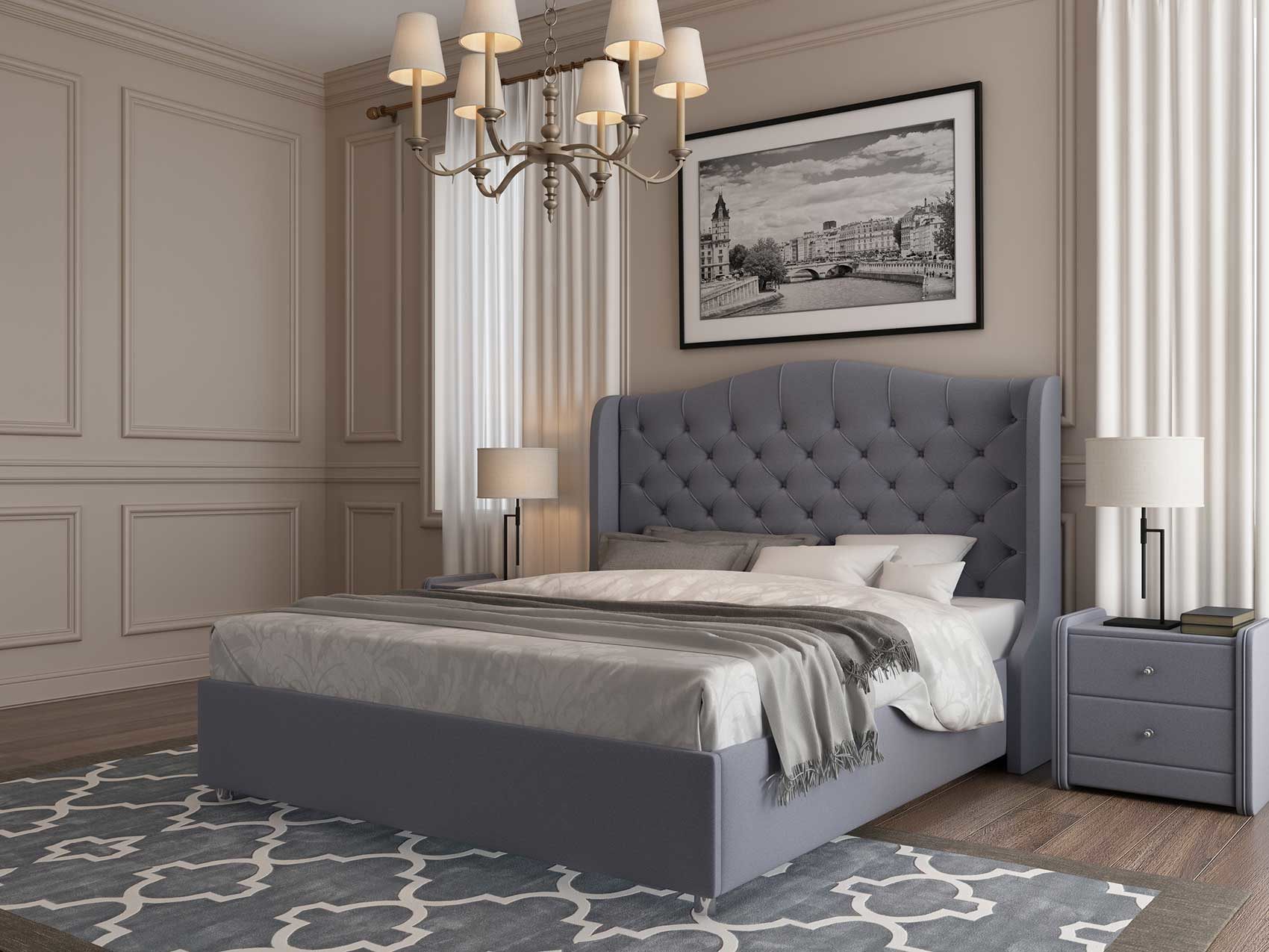 Модель Premier 5 отличает красивая фигурная спинка с каретной стяжкой. Изголовье мебели получило сложную фигурную форму и декорирование пуговицами в тон обивки. Такая кровать станет центром притяжения в любой спальне. Мягкая реализация обивки позволяет по-настоящему ощутить удобство и комфорт.