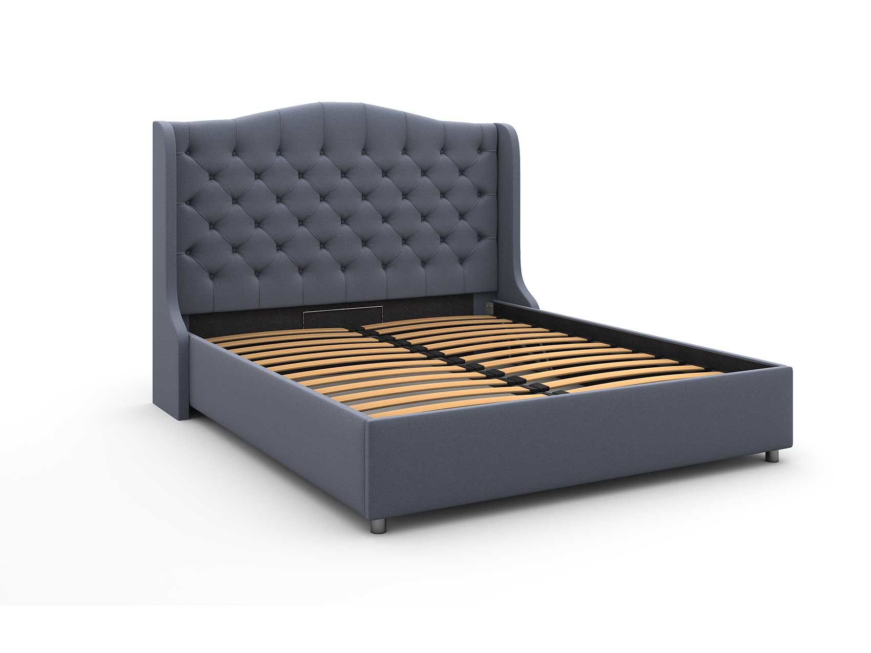 Кровать оснащена подъёмным механизмом. В такой вариации основание поднимается и открывает доступ к ящику для хранения белья и других вещей. Такая система может заменить небольшой шкаф и решить вопрос с организацией пространства.
