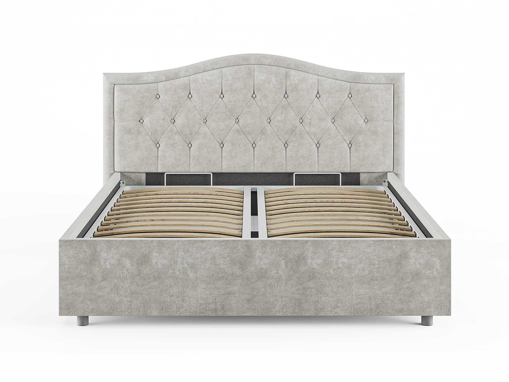 Кровать комплектуется металлическим основанием (без опор), которое имеет 13 рядов встроенных березовых ламелий на каждое спальное место, обеспечивая равномерное распределение нагрузки.