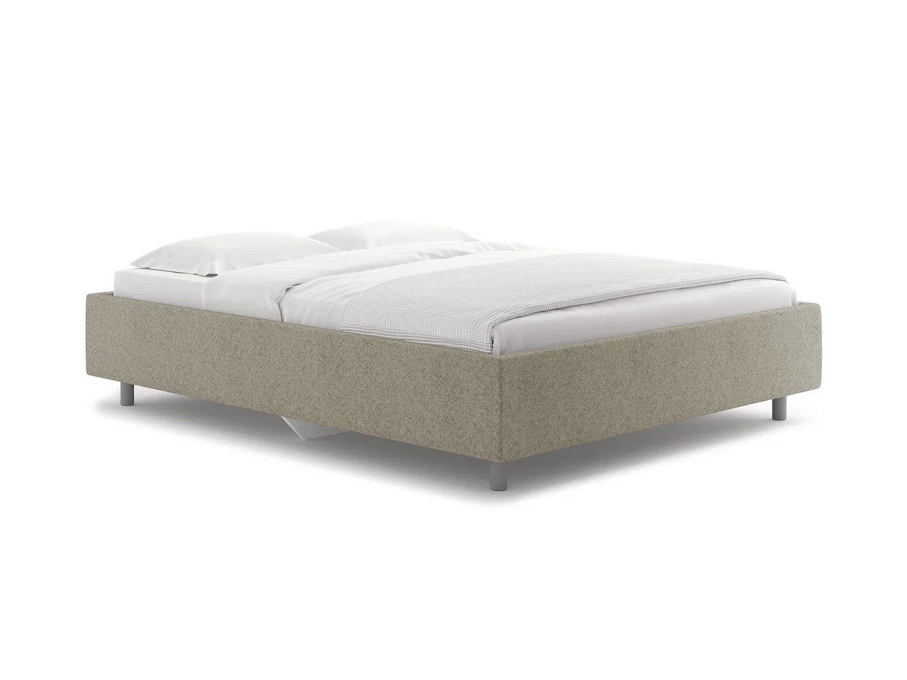 Стильная интерьерная кровать без спинки. Модель изготовлена из ДСП. Преимуществом кровати являются съемные чехлы царг, что позволяет легко ухаживать за обивкой или менять цвет кровати в зависимости от смены интерьера.