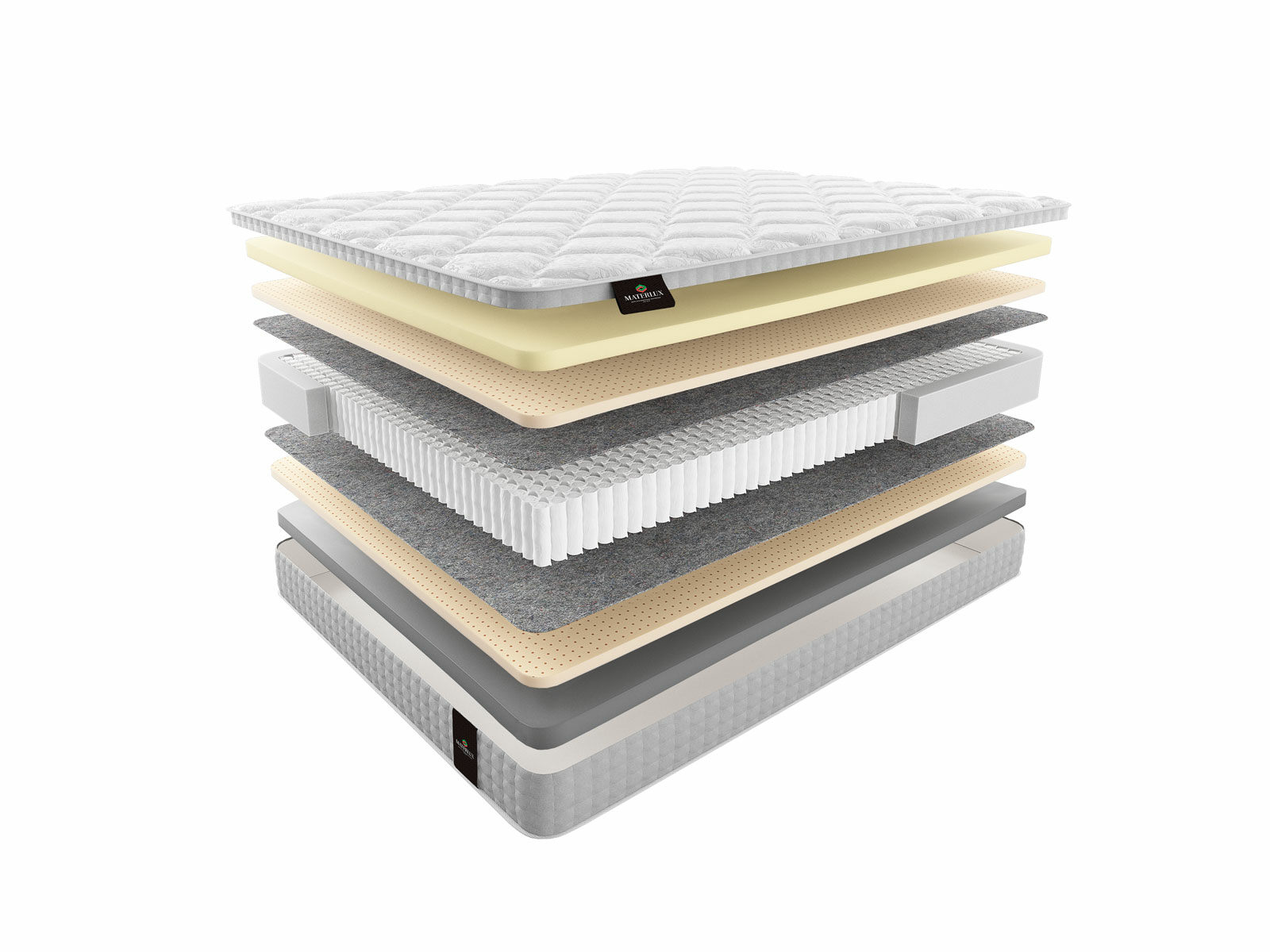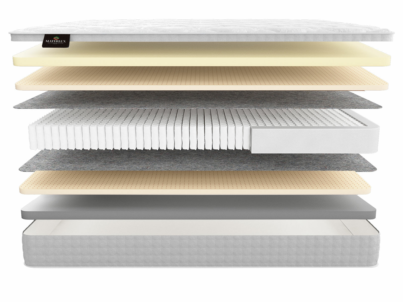 Термофиксированный фетр (500 гр./кв. м; 0,5 см): этот натуральный материал служит в качестве надежной изоляции между пружинами и внешними слоями матраса, обеспечивая дополнительную прочность и комфорт.