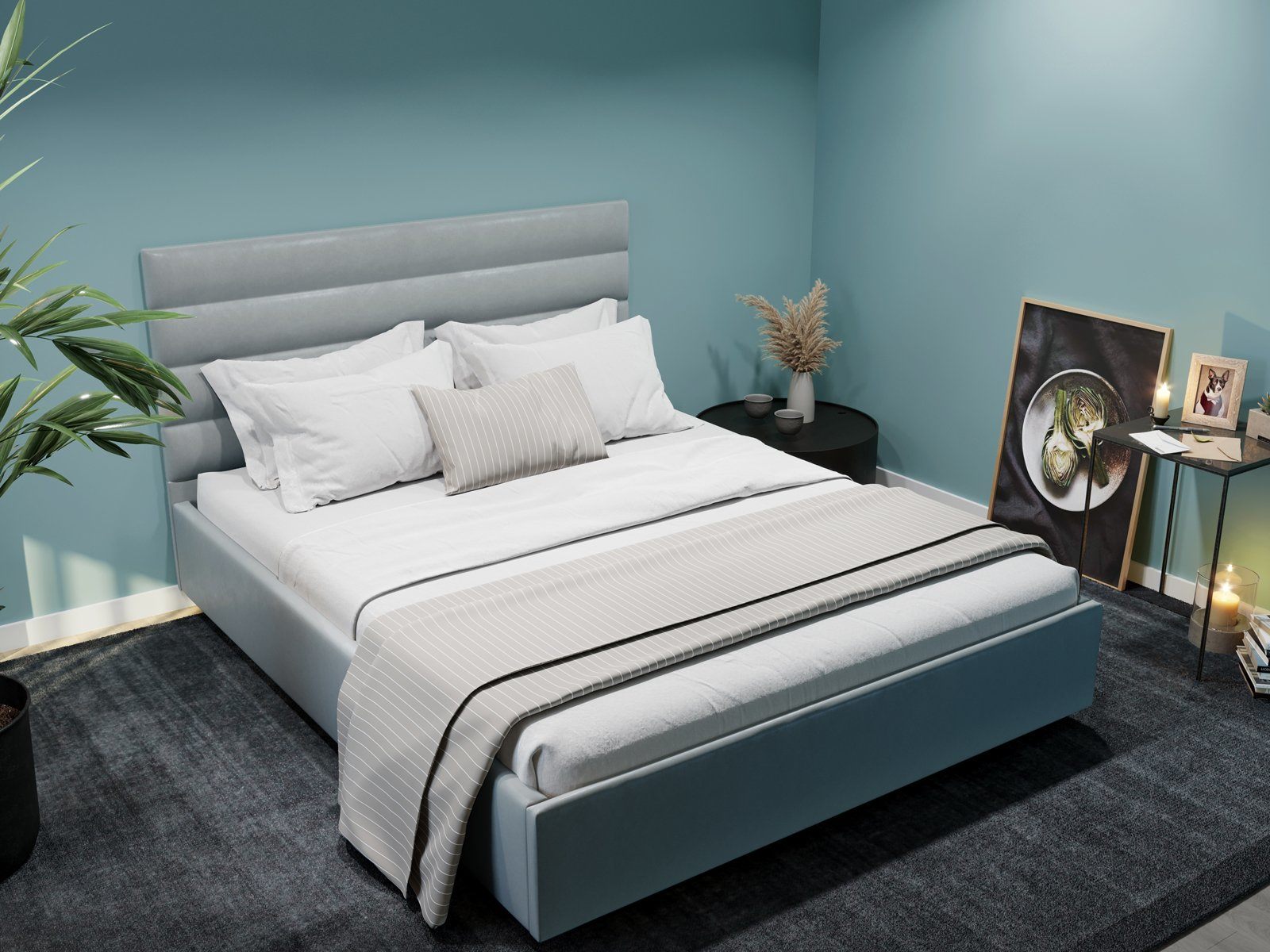 Кровать Левита получила изящно выполненное стильное изголовье. Мягкая горизонтальная стёжка украшает кровать и создаёт очень уютное пространство. Лаконичный и минималистичный дизайн, позволяет универсально вписать мебель в любой современный интерьер.