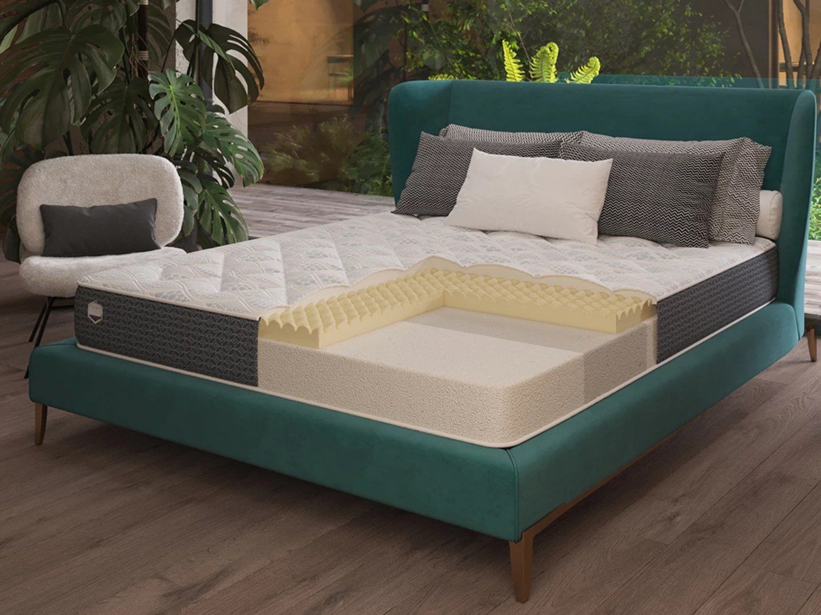 Alfabed Extension предотвращает преждевременную деформацию матраса, продлевая срок его эксплуатации благодаря множеству пор, имеющих петельчатую форму (альвеолярная структура). Материал обладает высокой прочностью и устойчивостью к деформации, а также оказывает ортопедическую поддержку телу во время сна. Выполняет функцию основы матраса.