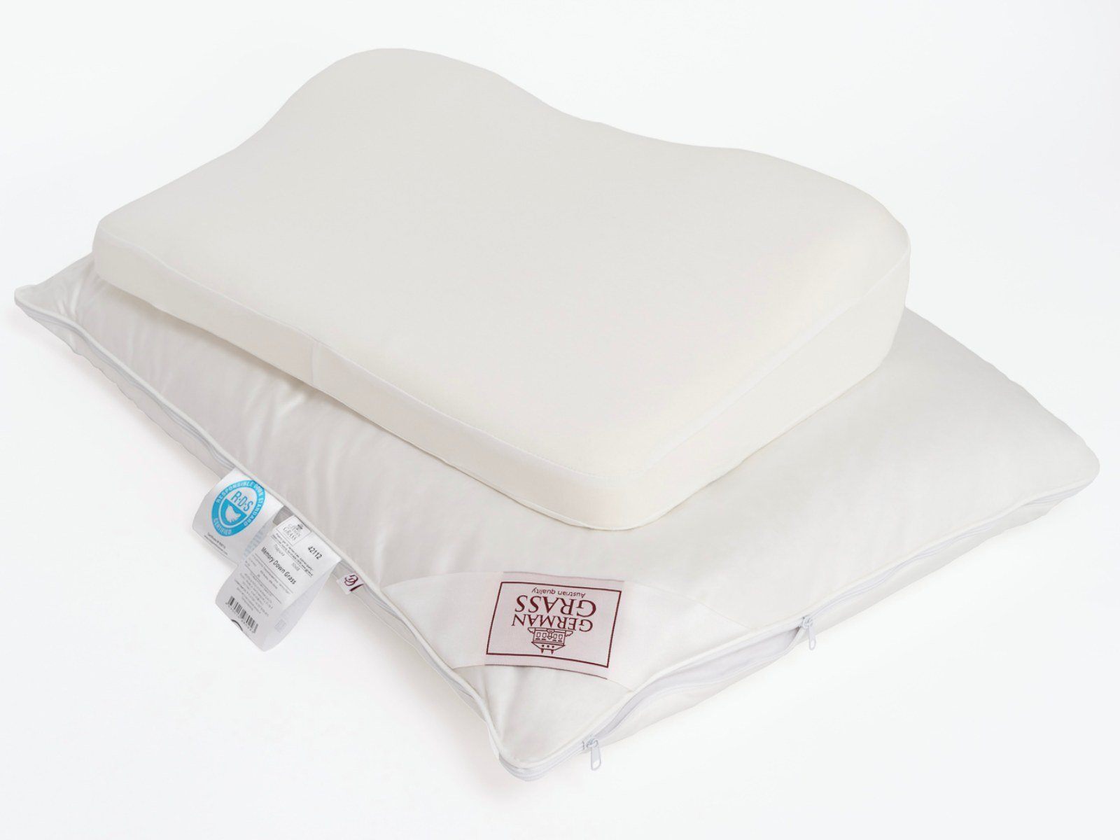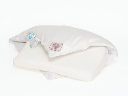 Наполнитель: 100% новый гусиный белый пух, отсортированный вручную, отборное качество. Внутри — вставка из полиуретановой пены с памятью формы с ортопедическим эффектом.