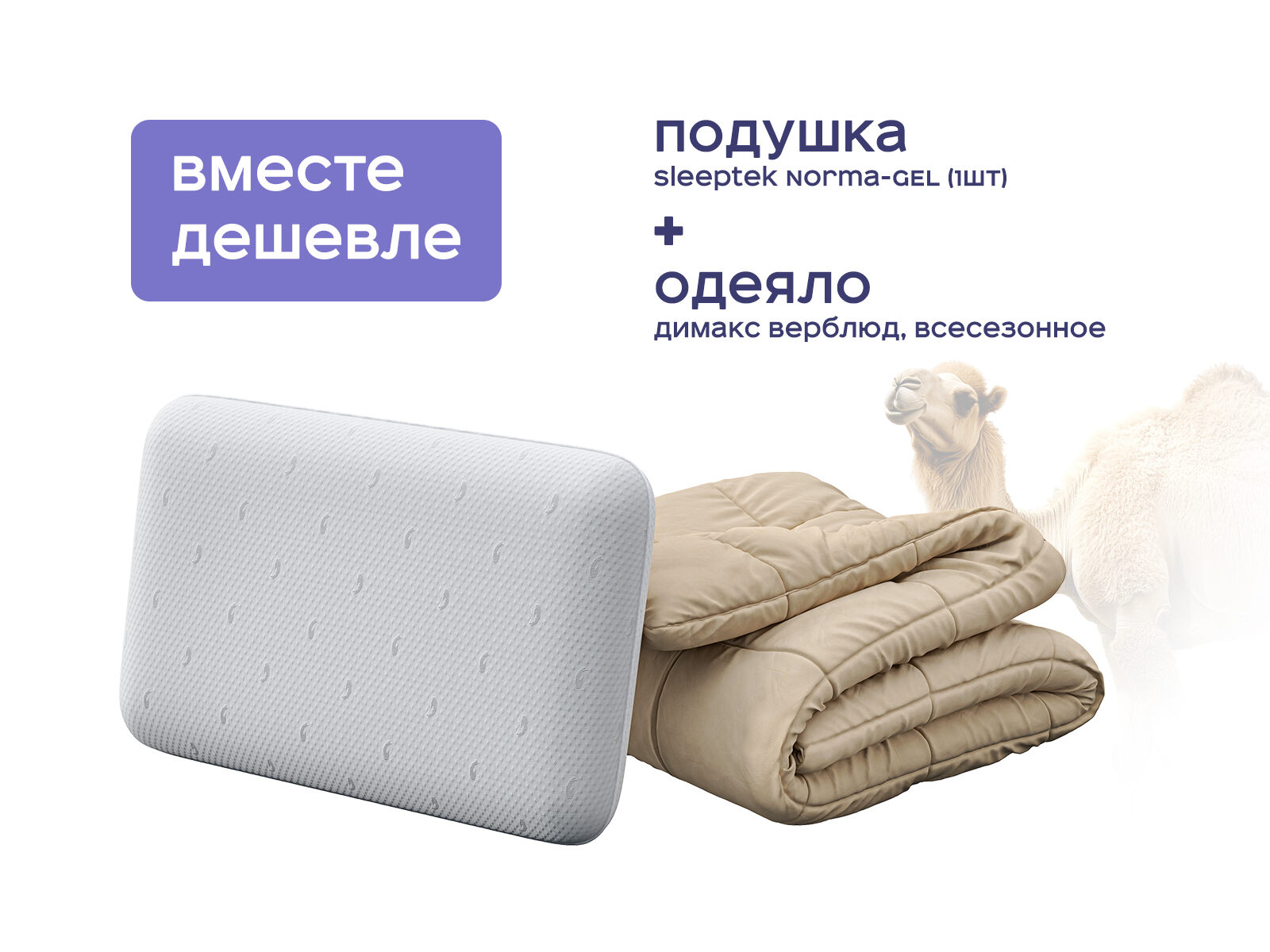 Представьте, что ваша спальня превращается в пятизвездочный отель, где каждая ночь — это настоящее расслабление. Этот комплект создан для тех, кто ценит здоровый сон и комфорт: его сердце — одеяло из верблюжьей шерсти, которое регулирует температуру и подушка Sleeptek Norma-GEL, сочетающая эффект памяти и охлаждающий гель. Вместе они работают как система, которая заботится о вашем теле и дарит глубокий отдых. Сэкономьте до 38% при покупке набором.
