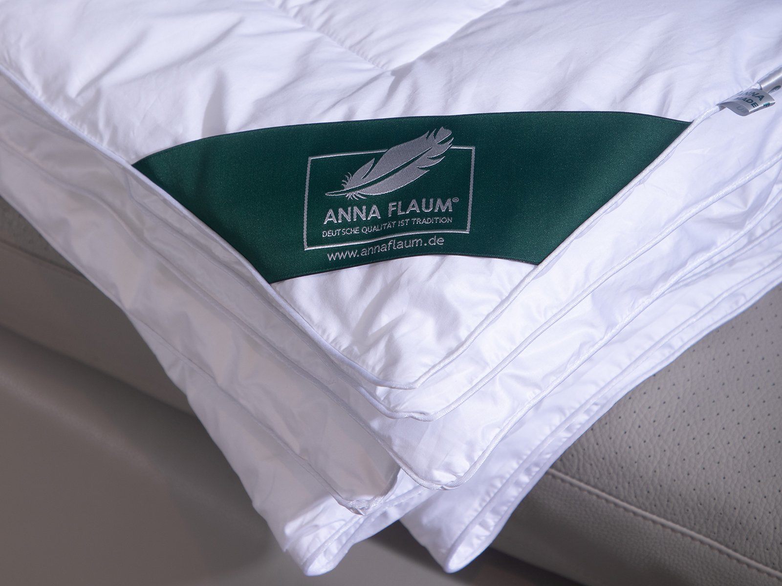 Атласный кант серебряного цвета подчеркивает белизну благородного хлопкового батиста и является отличительной особенностью изделий ANNA FLAUM®, придающей им роскошный вид.