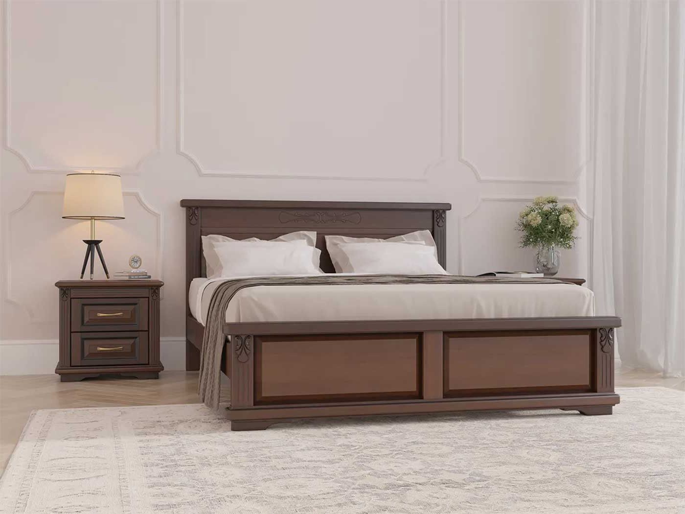 Деревянная кровать Палермо производится из массива ясеня. Элементами декора этой модели являются резьбовые элементы из натурального дерева, выполненные на высокотехнологичном оборудовании. Фундаментальность линий современной классики в сочетании с безупречным качеством изготовления и покраски — вот, что позволяет этой модели кровати, уверенно занимать лидирующие позиции на российском рынке в премиальном сегменте мебели.