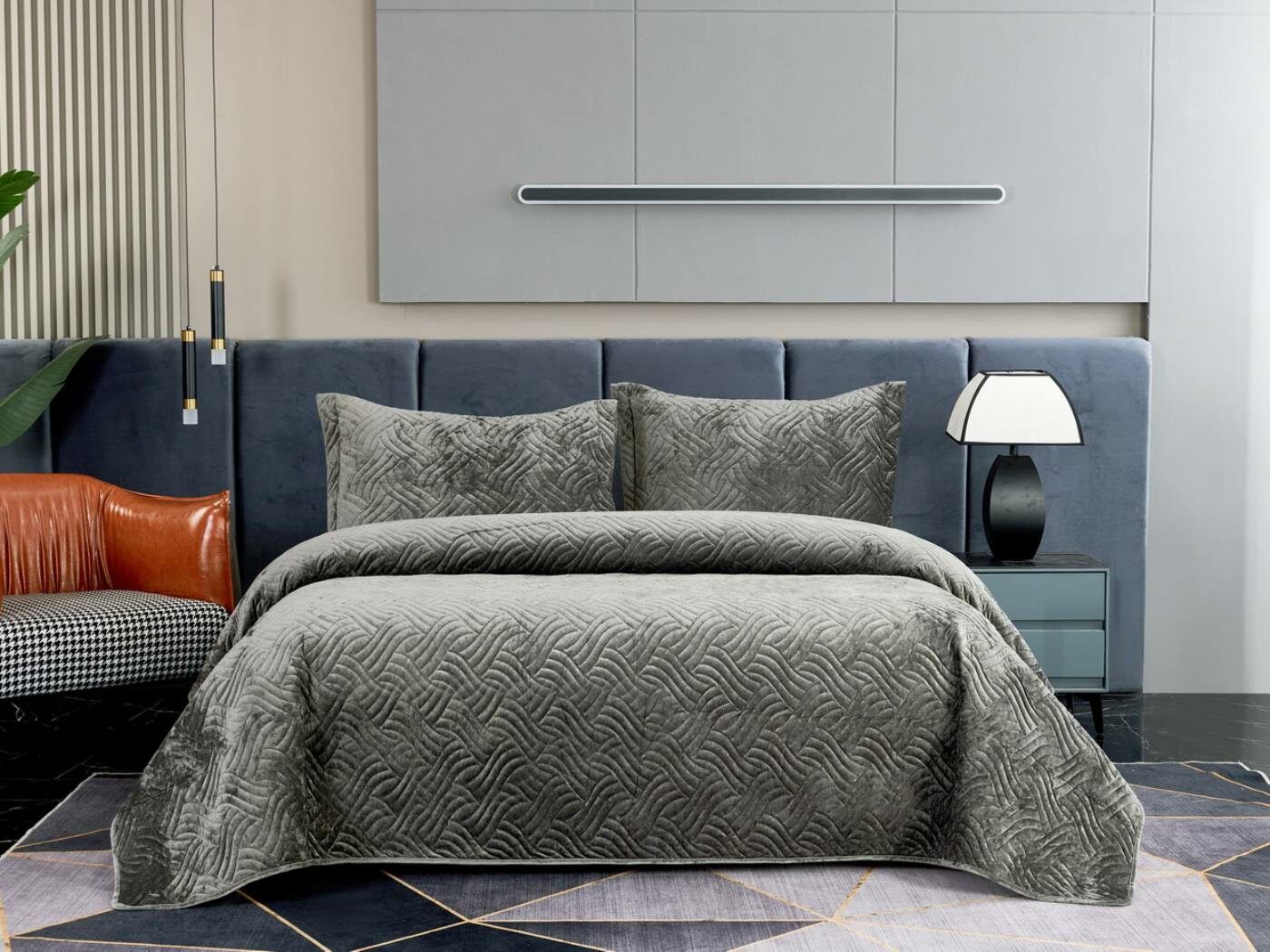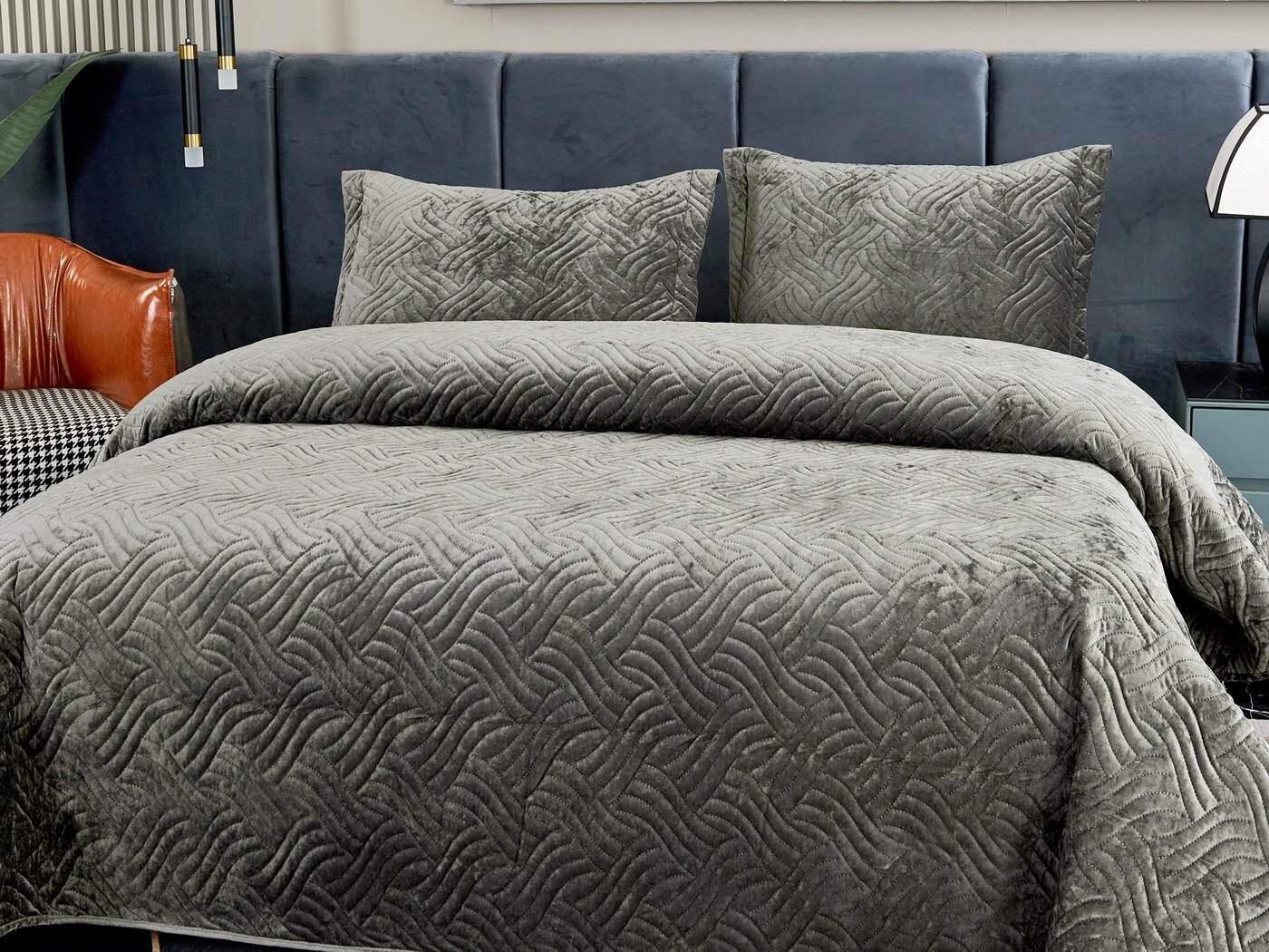 Покрывала «Деварта»: нежность и уют в вашем доме Окунитесь в мир комфорта и изысканности с новой коллекцией мягких бархатных покрывал «Деварта». Эти изделия станут настоящим украшением вашей спальни, добавив ей уюта и элегантности. Покрывала изготовлены из высококачественного бархата, который приятен на ощупь и обладает нежной бархатистой текстурой. Они устойчивы к износу и надолго сохраняют свой привлекательный внешний вид, яркость цвета и мягкость. Благодаря прочной и качественной декоративной стёжке «косичка» наполнитель надёжно зафиксирован внутри изделия. «Деварта» представлена в пяти оттенках: от тёплого бежевого до спокойного серо-голубого. Вы сможете подобрать идеальный вариант для вашего интерьера. Размерный ряд включает два варианта, что позволяет выбрать покрывало, которое идеально подойдёт для вашей кровати или дивана. В комплект входят две наволочки размером 50х70 см. Каждое покрывало аккуратно обшито кантом, а наволочки украшены милыми ушками шириной 5 см. Это придаёт изделиям особый шарм и делает их ещё более привлекательными. Не упустите возможность приобрести эти замечательные покрывала и создать в своём доме атмосферу тепла и уюта. «Деварта» подарит вам не только эстетическое наслаждение, но и незабываемые ощущения при каждом прикосновении.