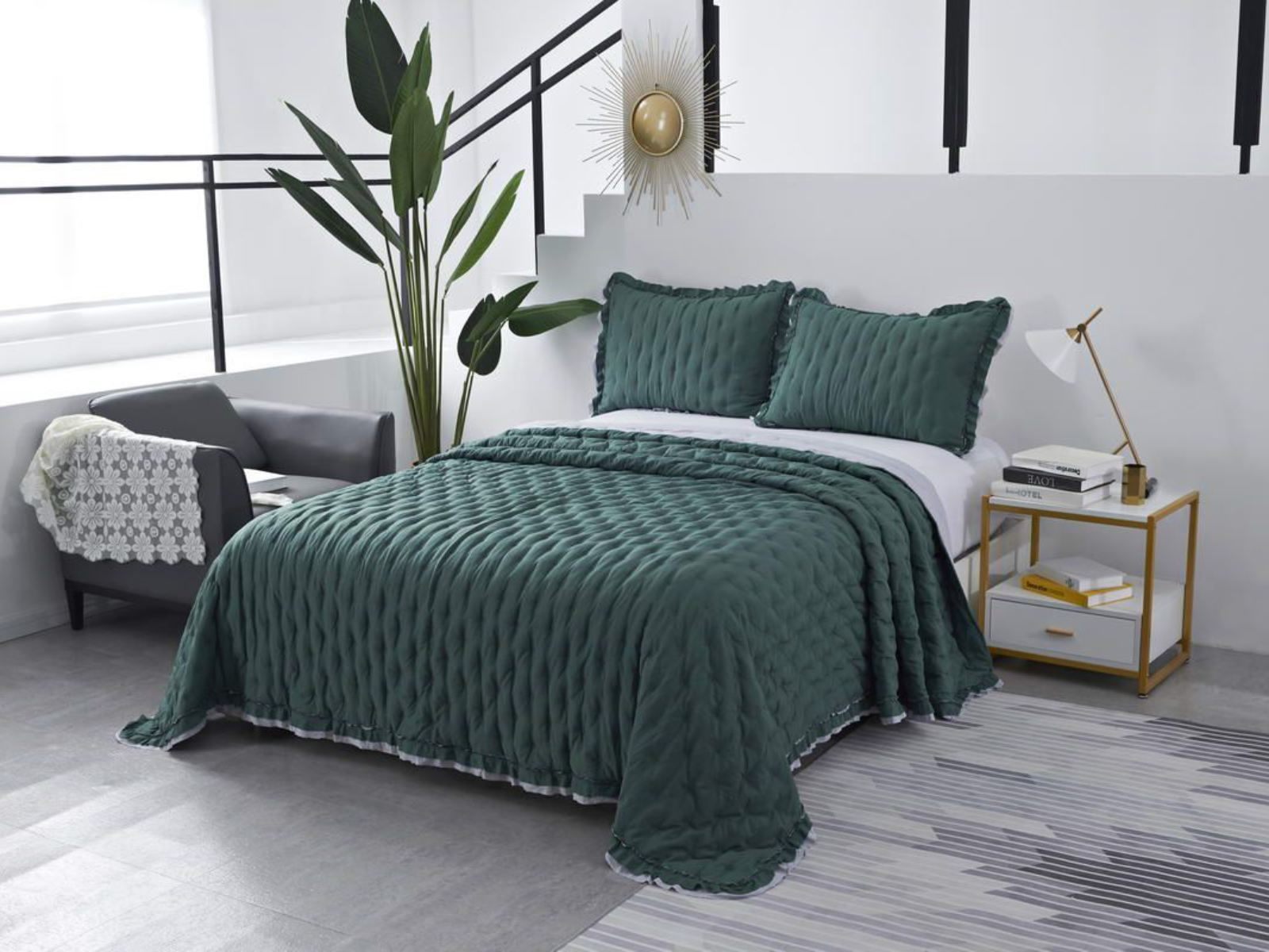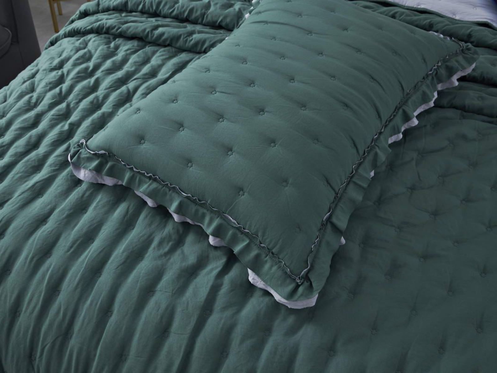 Покрывала выполнены в десяти оттенках, они подойдут для различных интерьеров, объединяет коллекцию потрясающее качество и приятный внешний вид. Изделия декорированы рюшами по краю, что подчеркивает из красоту и изысканность.
