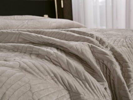 На создание велюрового покрывала Ноэль наших дизайнеров вдохновила ночь в середине лета, когда на раскаленную от жары землю спускается долгожданная прохлада. Роскошная вышивка в виде пальмовых листьев будет напоминать о тени, которую отбрасывают деревья.