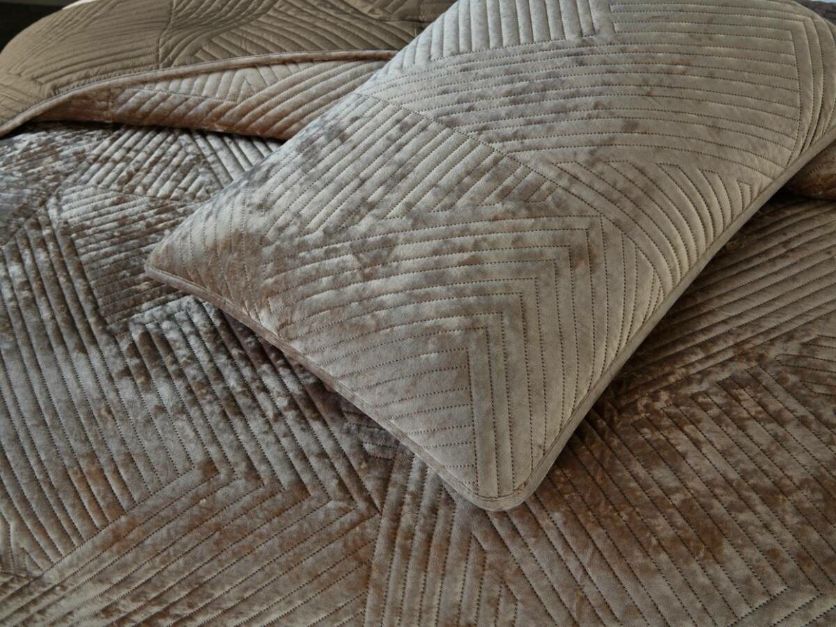 Покрывало украшает лаконичный геометрический орнамент. Геометрия всегда была и остаётся актуальной классикой. Конфигурация различных фигур, углов и линий позволяет им органично вписаться в самые разнообразные интерьерные стили.