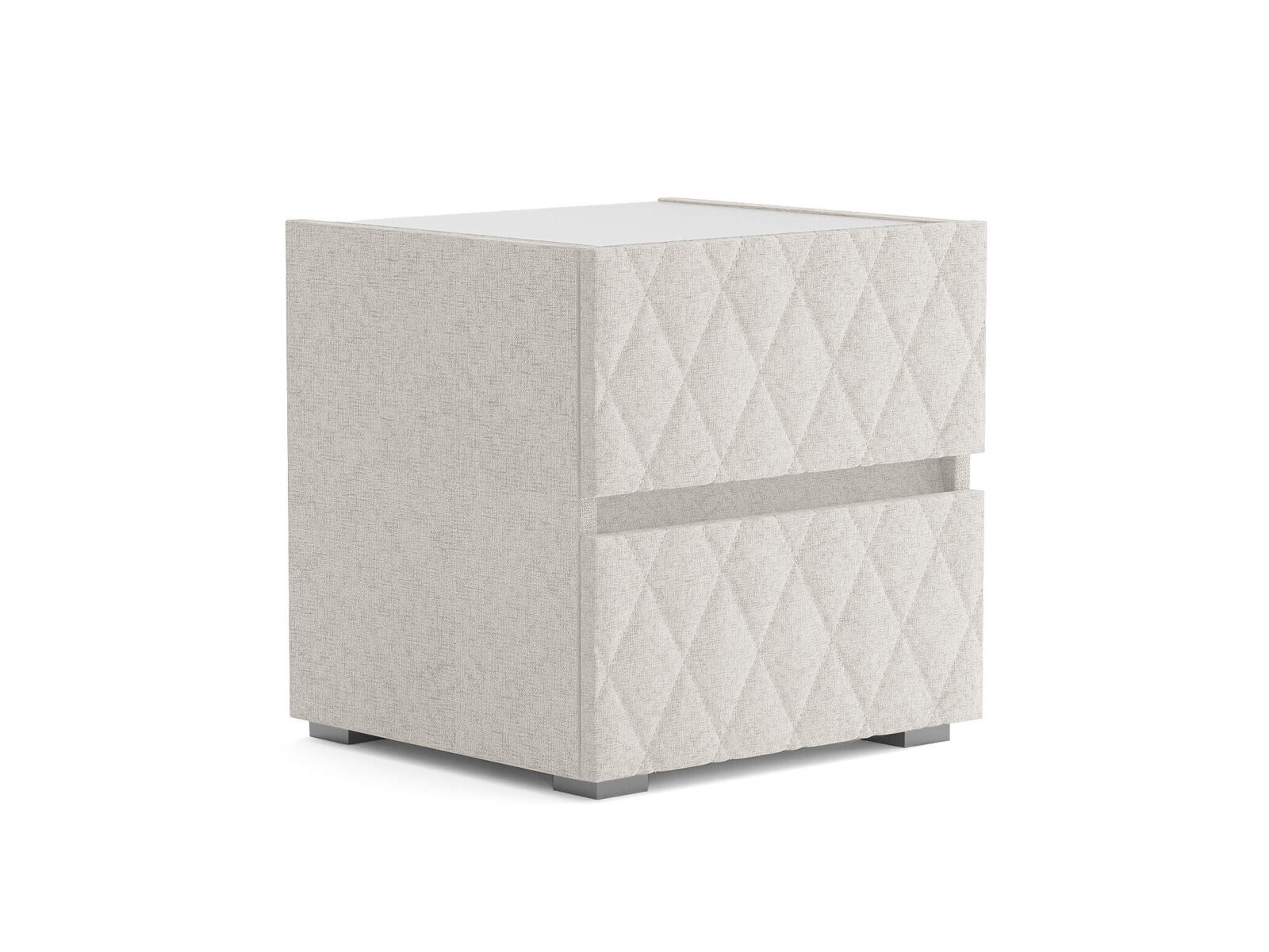Тумба с мягкими фасадами, украшенными изысканной стежкой в виде ромбов, представляет собой идеальное сочетание утонченного дизайна и функциональности. Два выдвижных ящика с направляющими скрытого монтажа оснащены доводчиками. Тумбу дополнительно можно укомплектовать стеклянной столешницей. Широкий выбор фактур и цветов исполнения.